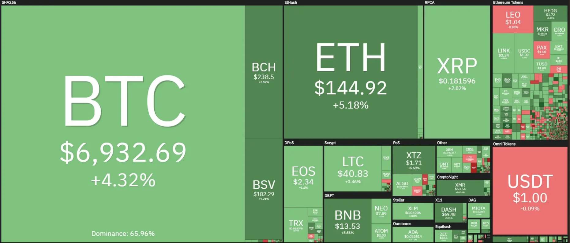 O Bitcoin liderou a ascensão. Um aumento que para a maioria das criptomoedas, como o Bitcoin, que sempre marca o ritmo, atualiza os máximos das últimas três semanas, ultrapassando o limite de resistência de US $ 6.800, formalizando o início de um novo ciclo configurado durante essas horas, que terá que ser confirmado no fim de semana.