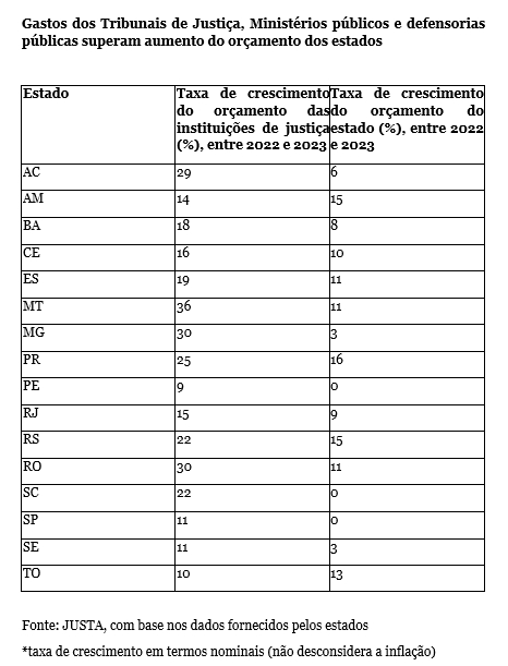 Gastos dos Tribunais de Justiça, Ministérios públicos e defensorias públicas superam aumento do orçamento dos estados