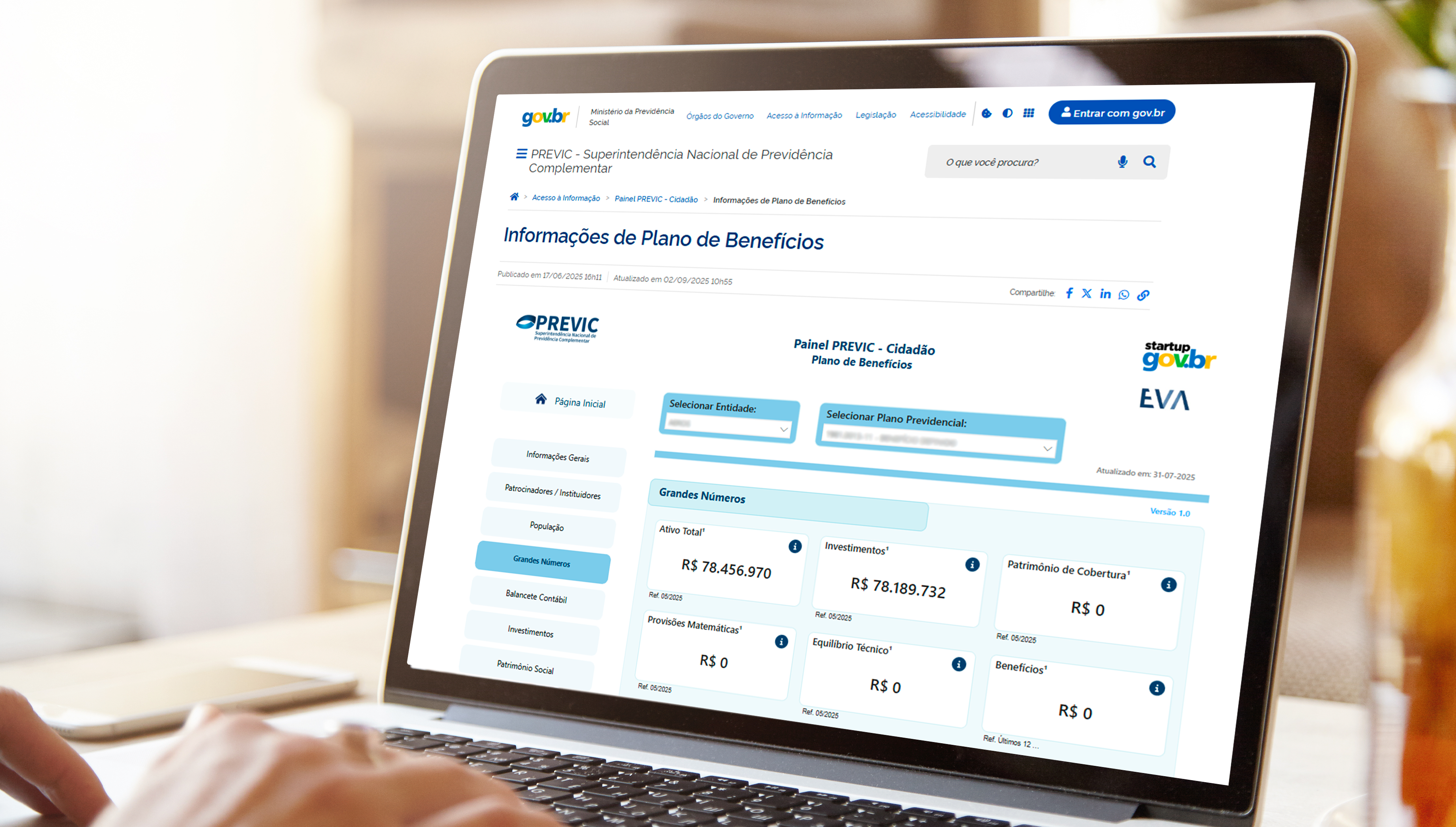 Desenvolvido pela Superintendência Nacional de Previdência Complementar em parceria com o Ministério da Gestão e da Inovação em Serviços Públicos (MGI), o Painel PREVIC - Cidadão é resultado do Projeto EVA (protótipo do painel gerencial de Estruturação, Visualização e Análise de dados criado por meio do programa Startup Gov.br, pelo Acordo de Cooperação Técnica 138/2023).